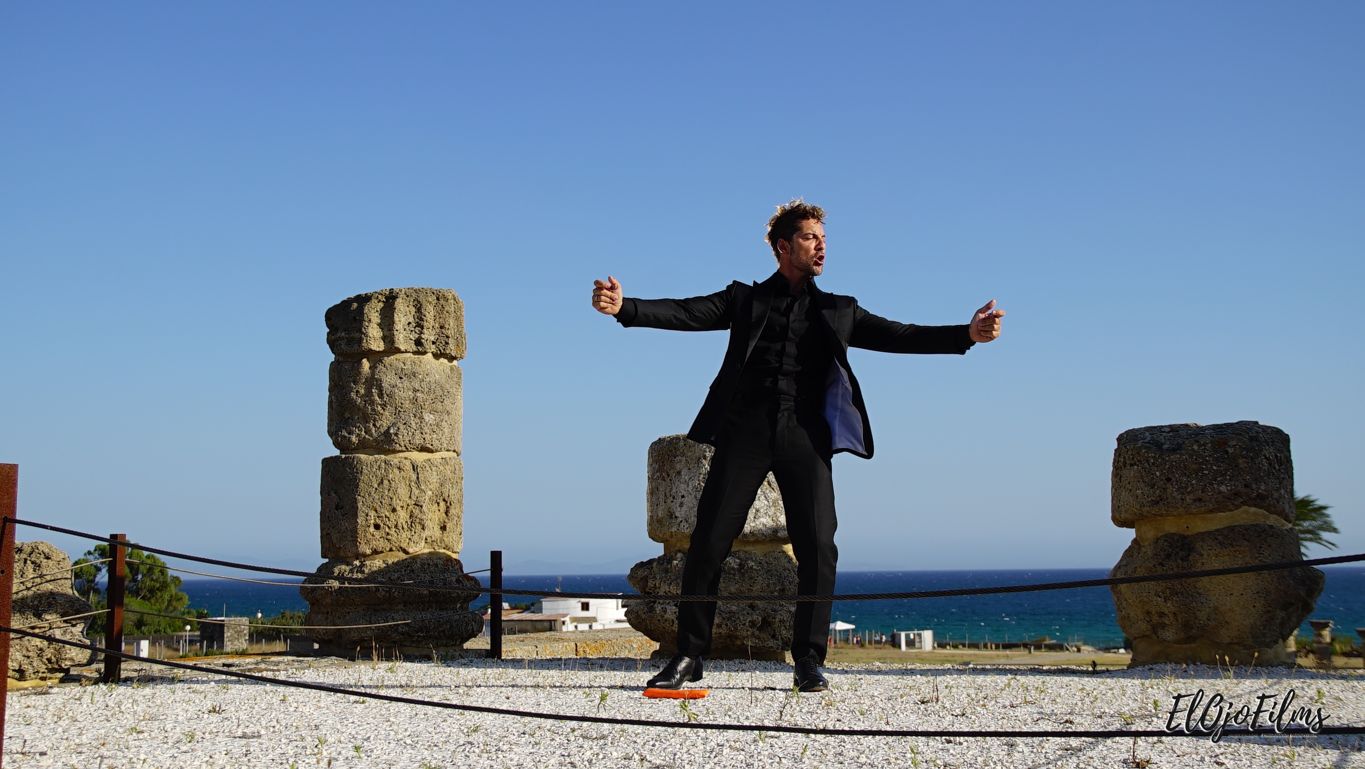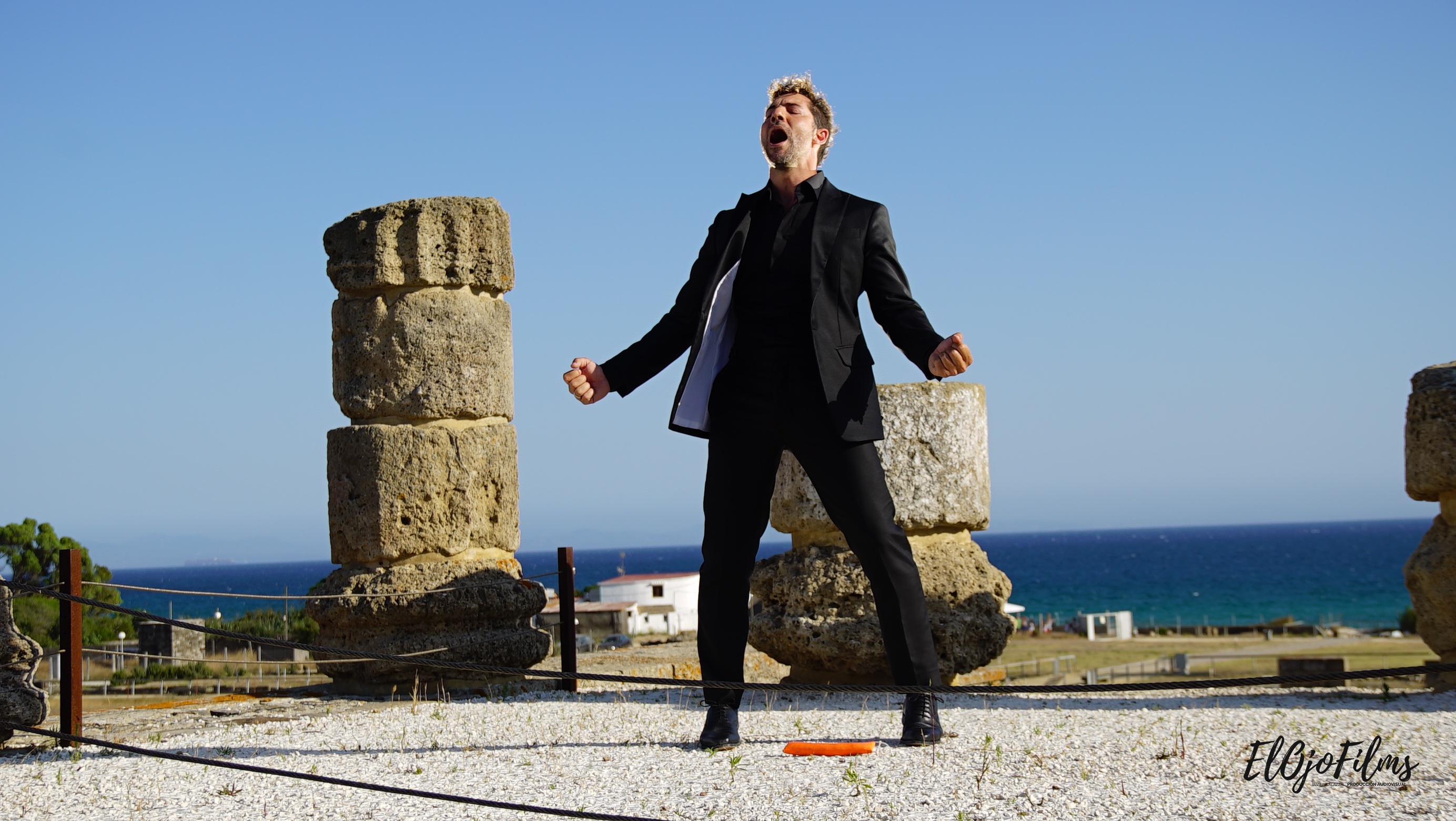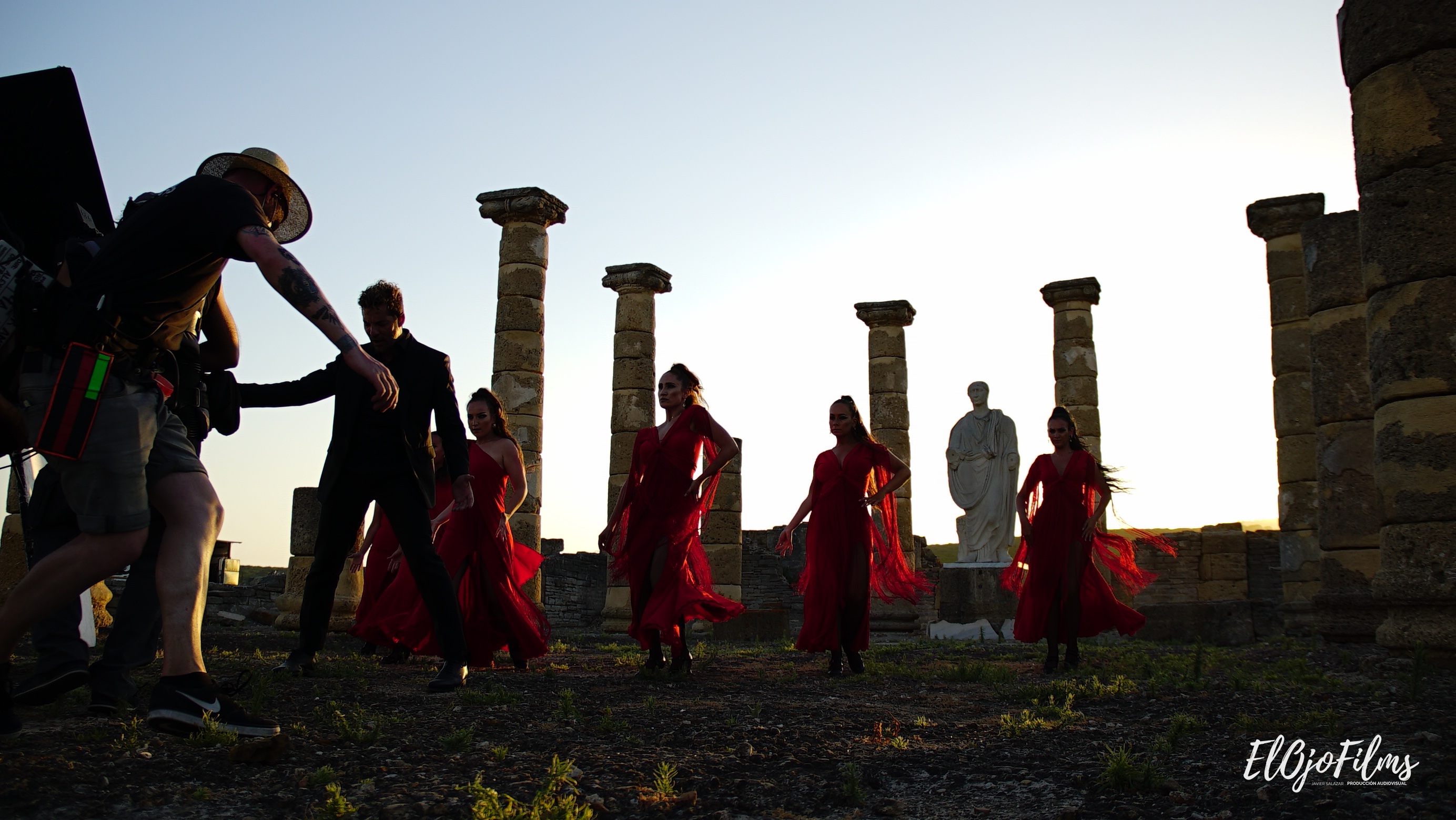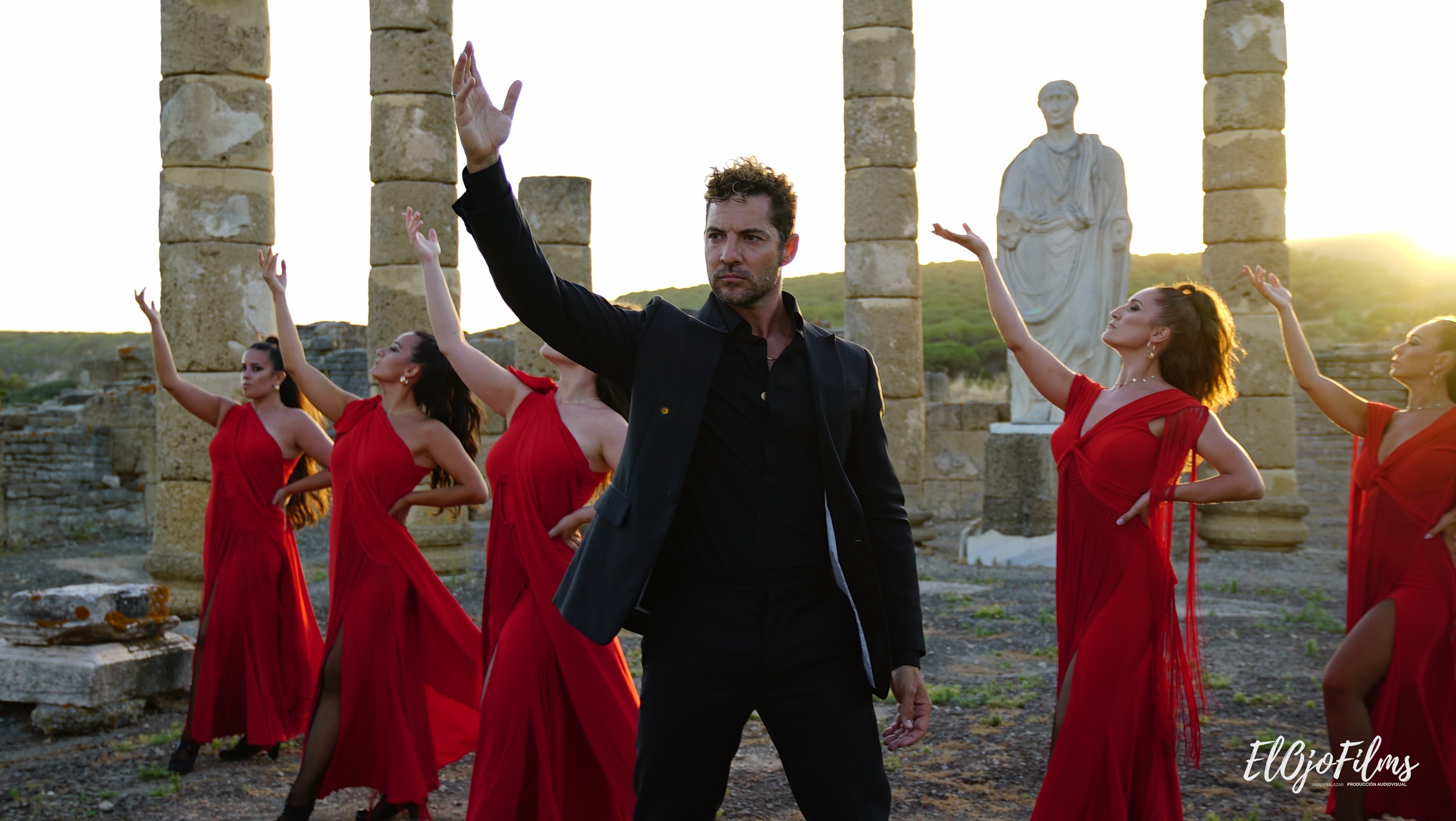 Fotografías del rodaje del videoclip «Amor Amé» de David Bisbal, rodado en julio de 2020 en el enclave arqueológico Baelo Claudia de Bolonia, Tarifa (Cádiz). El videoclip fue dirigido por Alexis Morante. Abajo el making of y el videoclip.