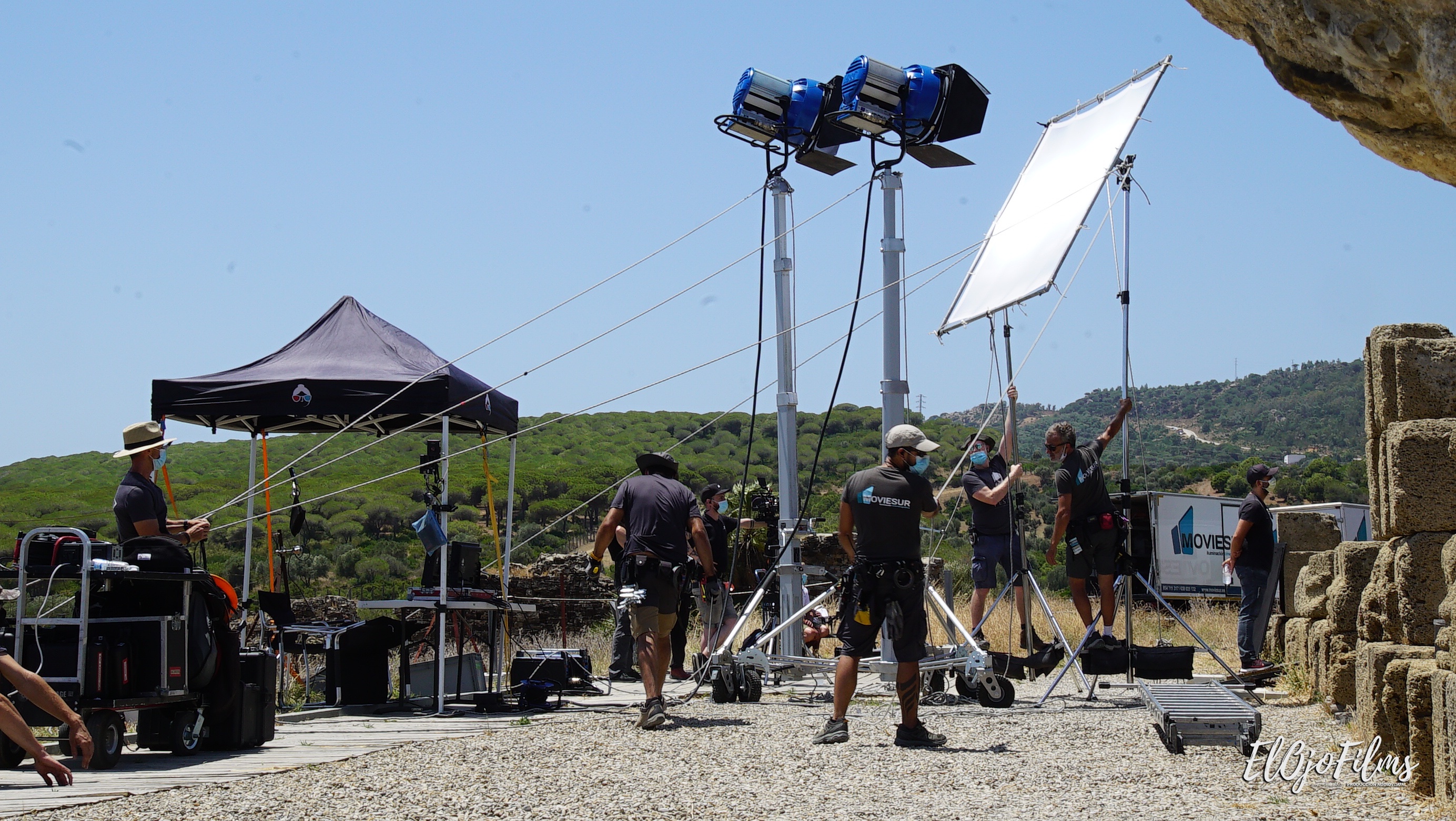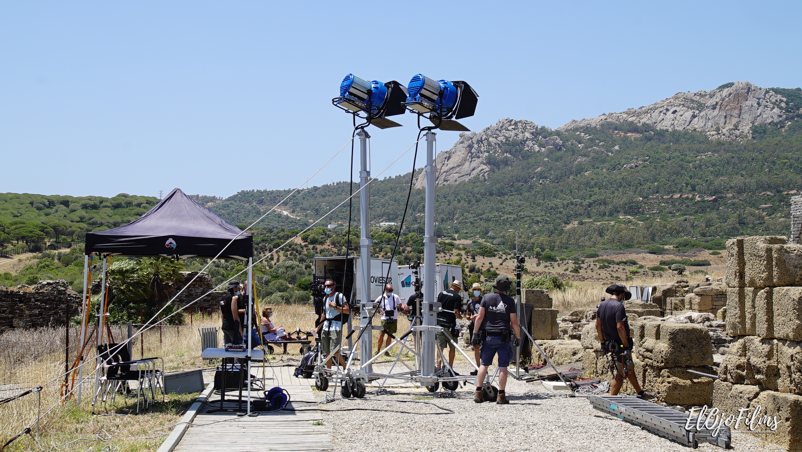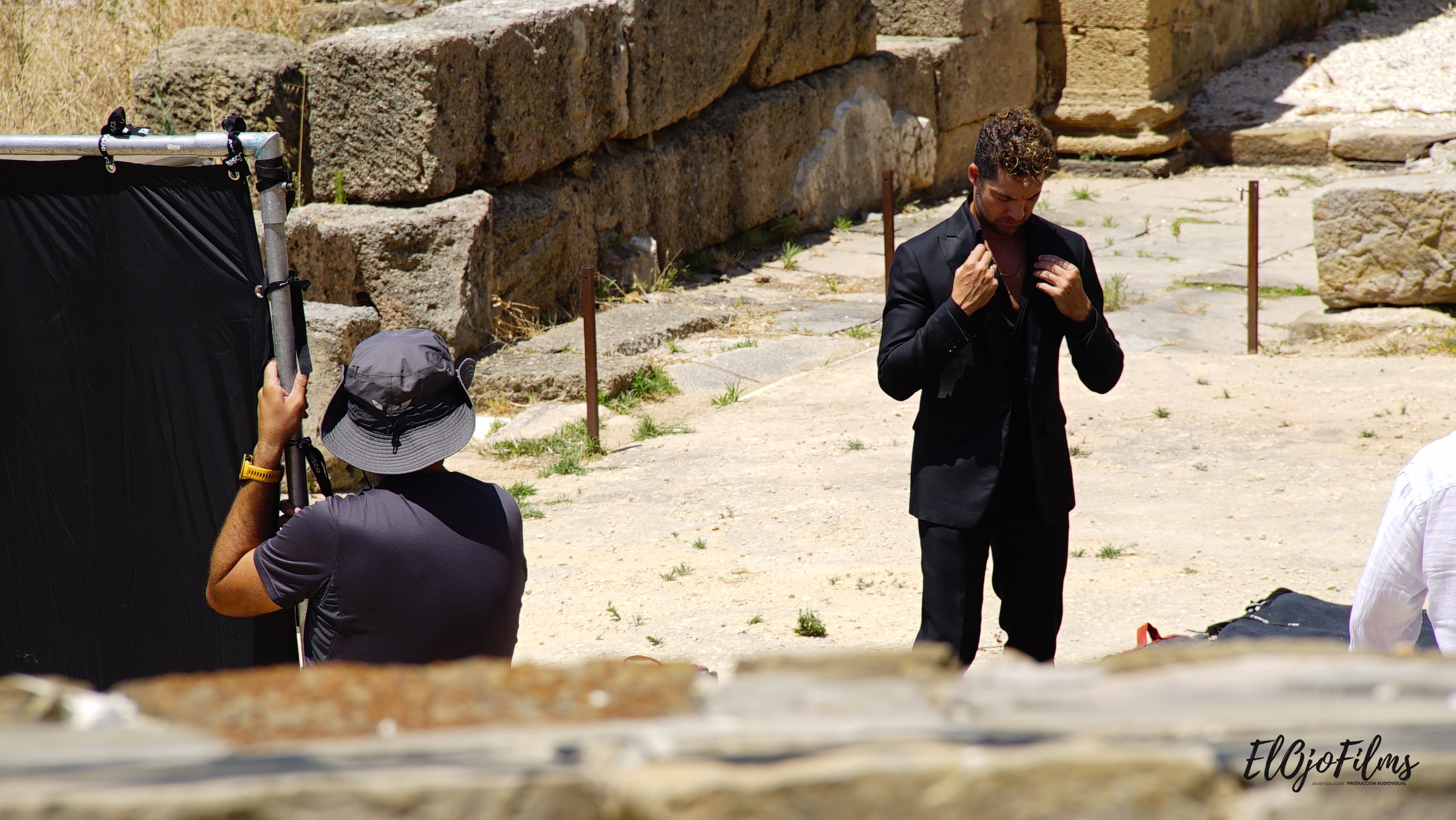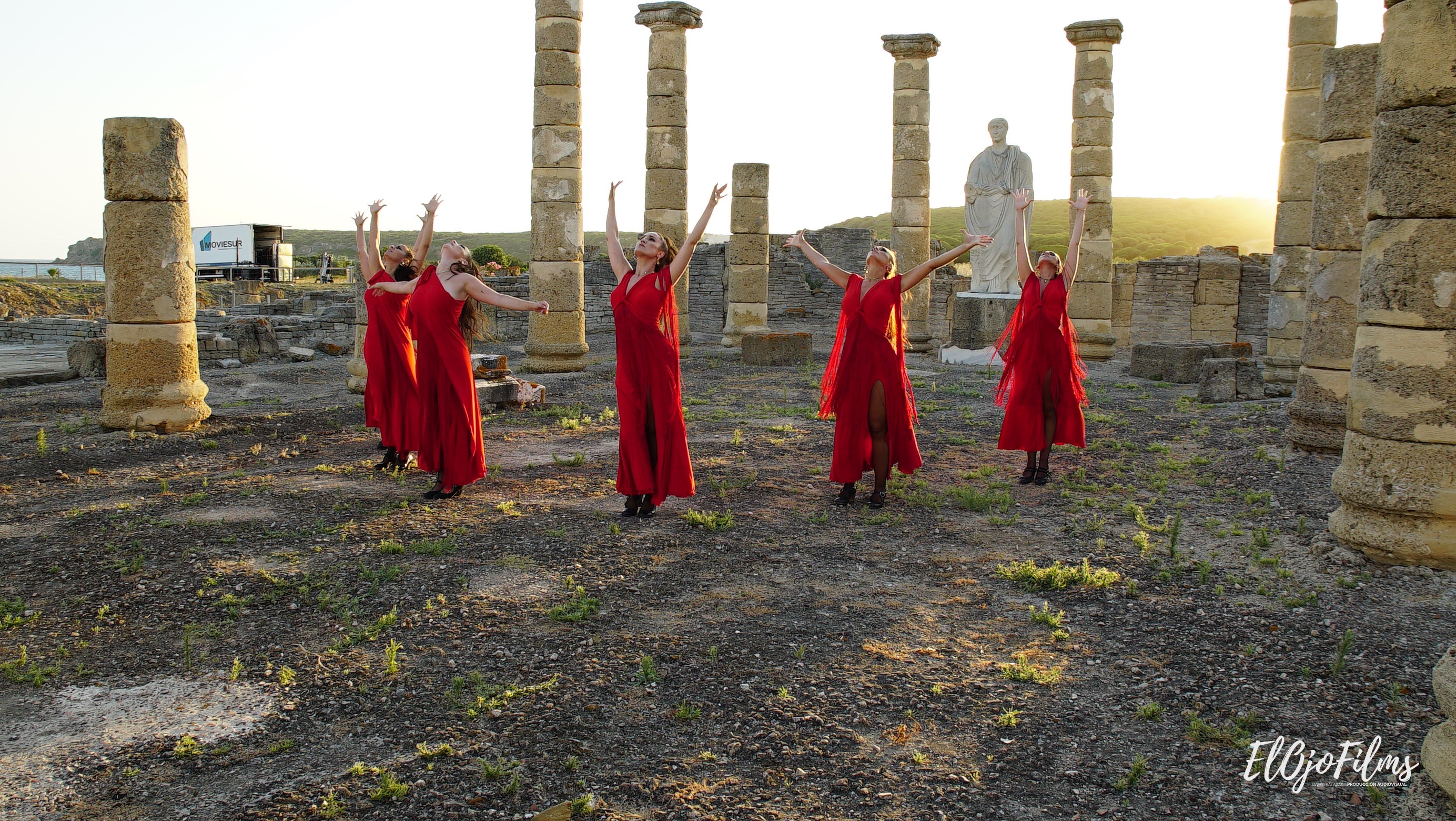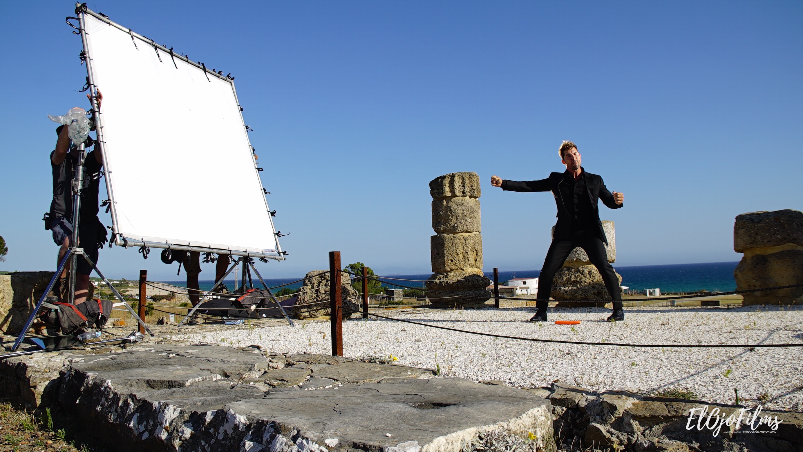 Fotografías del rodaje del videoclip «Amor Amé» de David Bisbal, rodado en julio de 2020 en el enclave arqueológico Baelo Claudia de Bolonia, Tarifa (Cádiz). El videoclip fue dirigido por Alexis Morante. Abajo el making of y el videoclip.